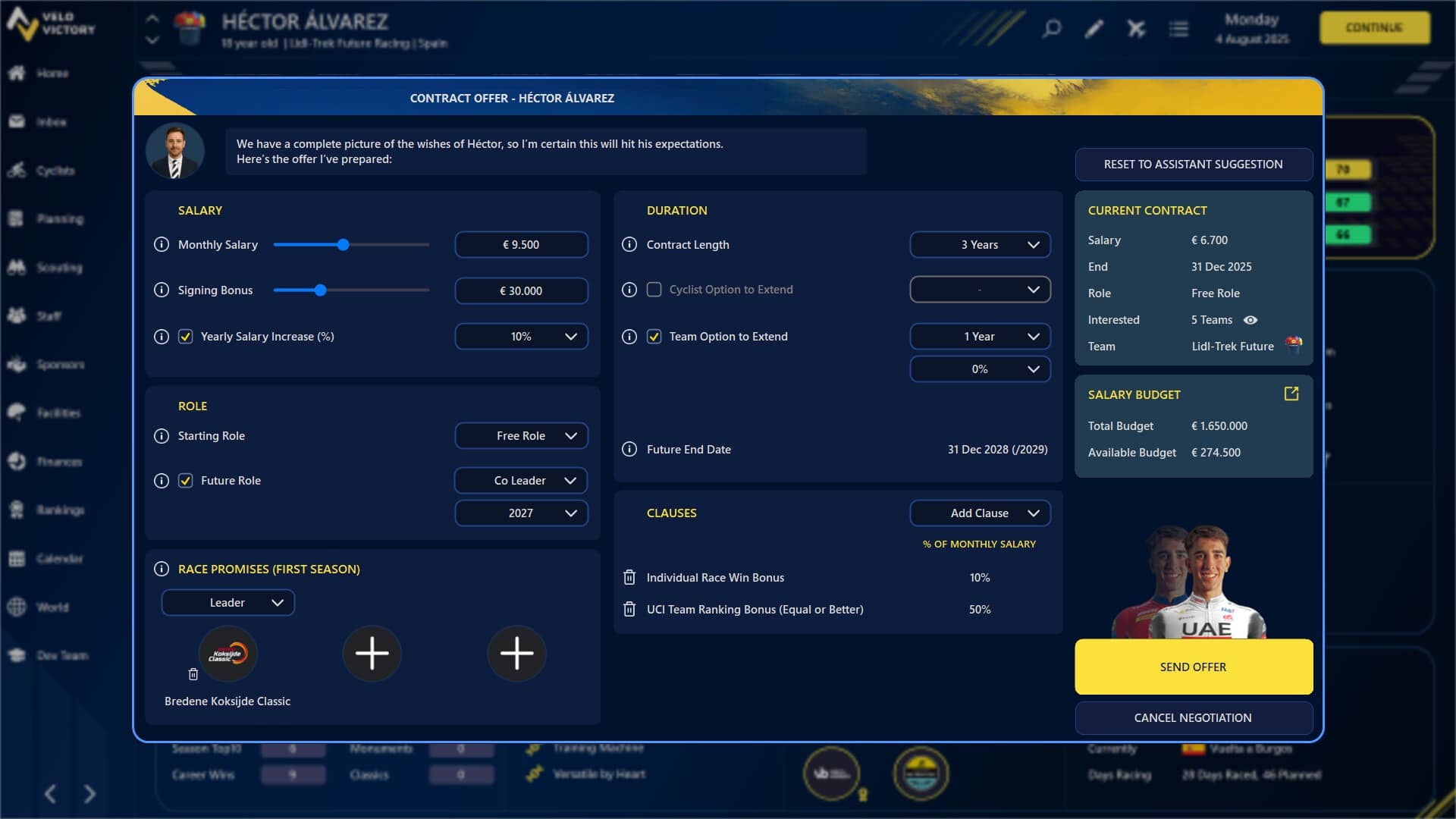 Dat betekent dat spelers te maken krijgen met een dynamische markt waarin concurrentie en timing cruciaal zijn. Een renner die plots uitblinkt, kan ineens de interesse wekken van meerdere ploegen. Sponsors kunnen druk zetten om een ster aan te trekken. En spelers moeten laveren tussen beloftes, budgetten en sportieve ambities.