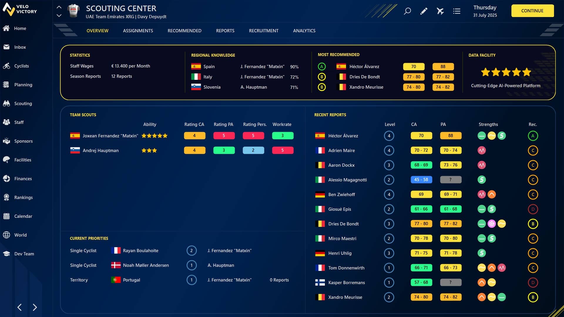 De vergelijking met voetbalgames is treffend. Waar FIFA zich vooral richt op flashy actie, richt Football Manager zich op realisme en strategie. Velo Victory wil diezelfde rol innemen binnen het wielrennen: minder spektakel, meer inhoud, zonder dat het saai wordt.