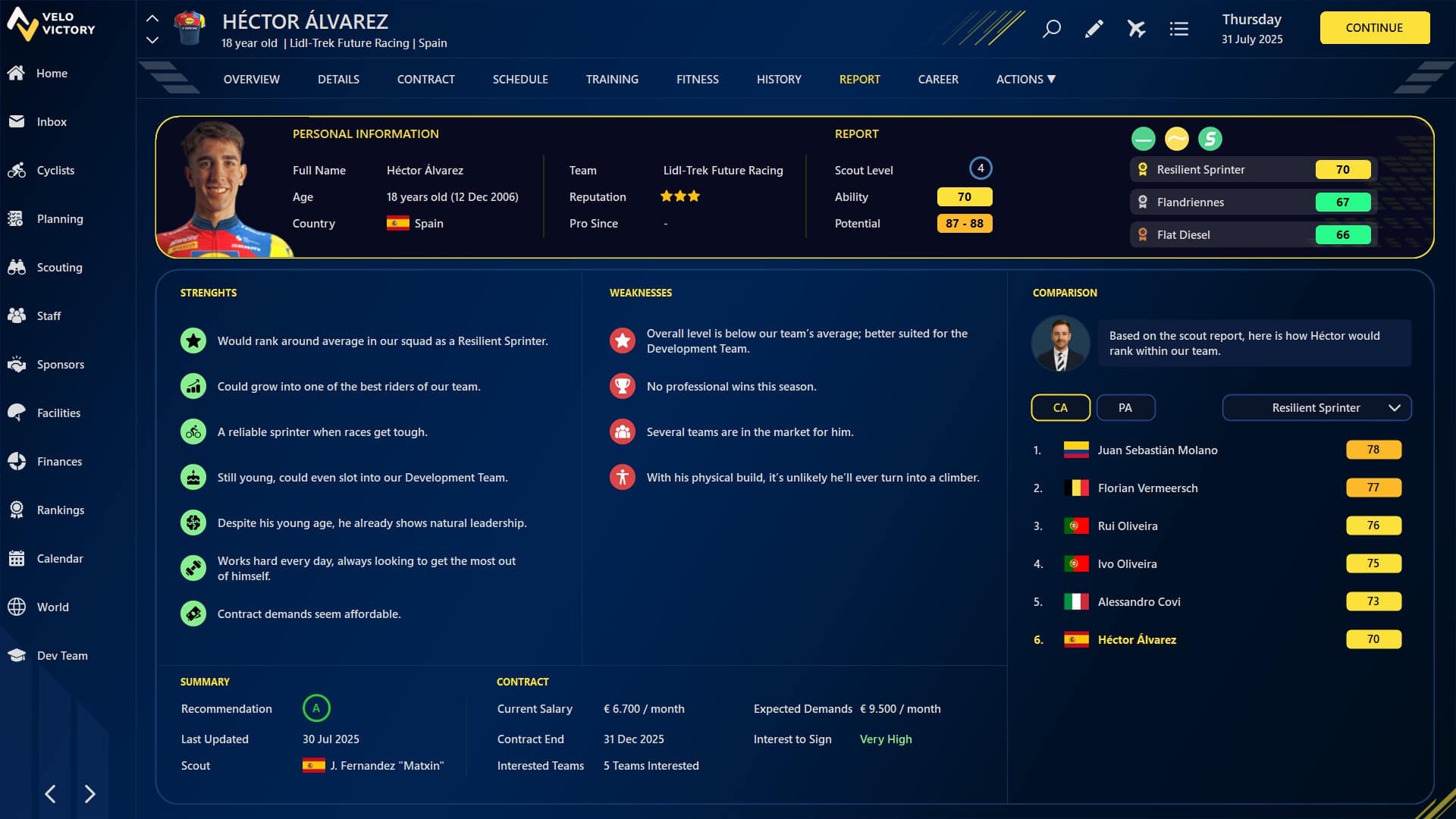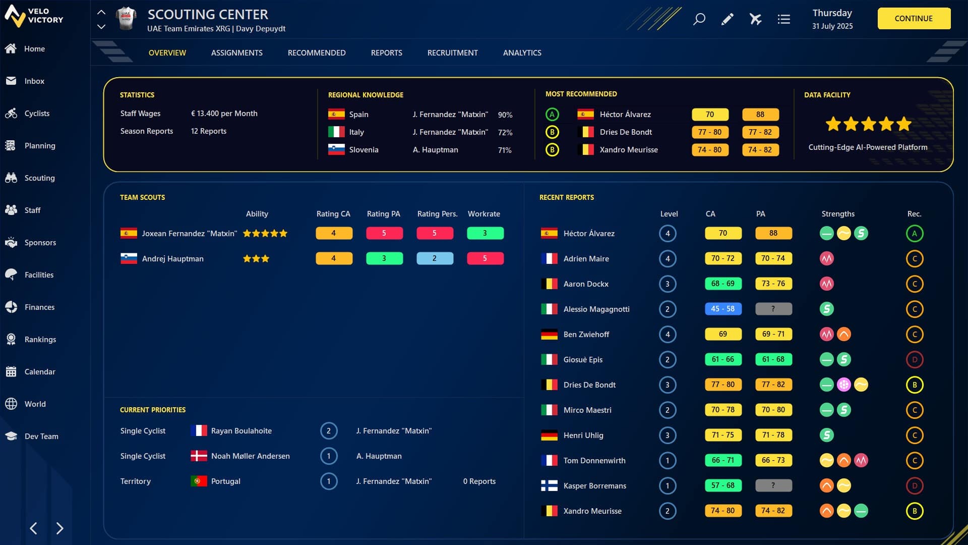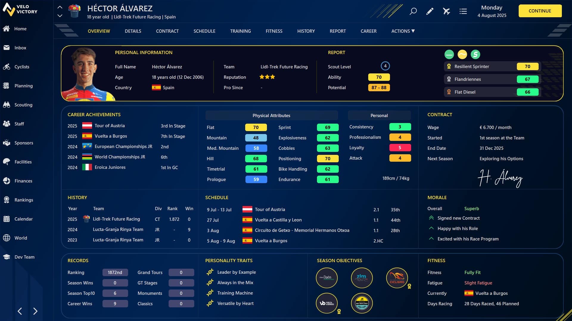 De vergelijking met voetbalgames is treffend. Waar FIFA zich vooral richt op flashy actie, richt Football Manager zich op realisme en strategie. Velo Victory wil diezelfde rol innemen binnen het wielrennen: minder spektakel, meer inhoud, zonder dat het saai wordt.