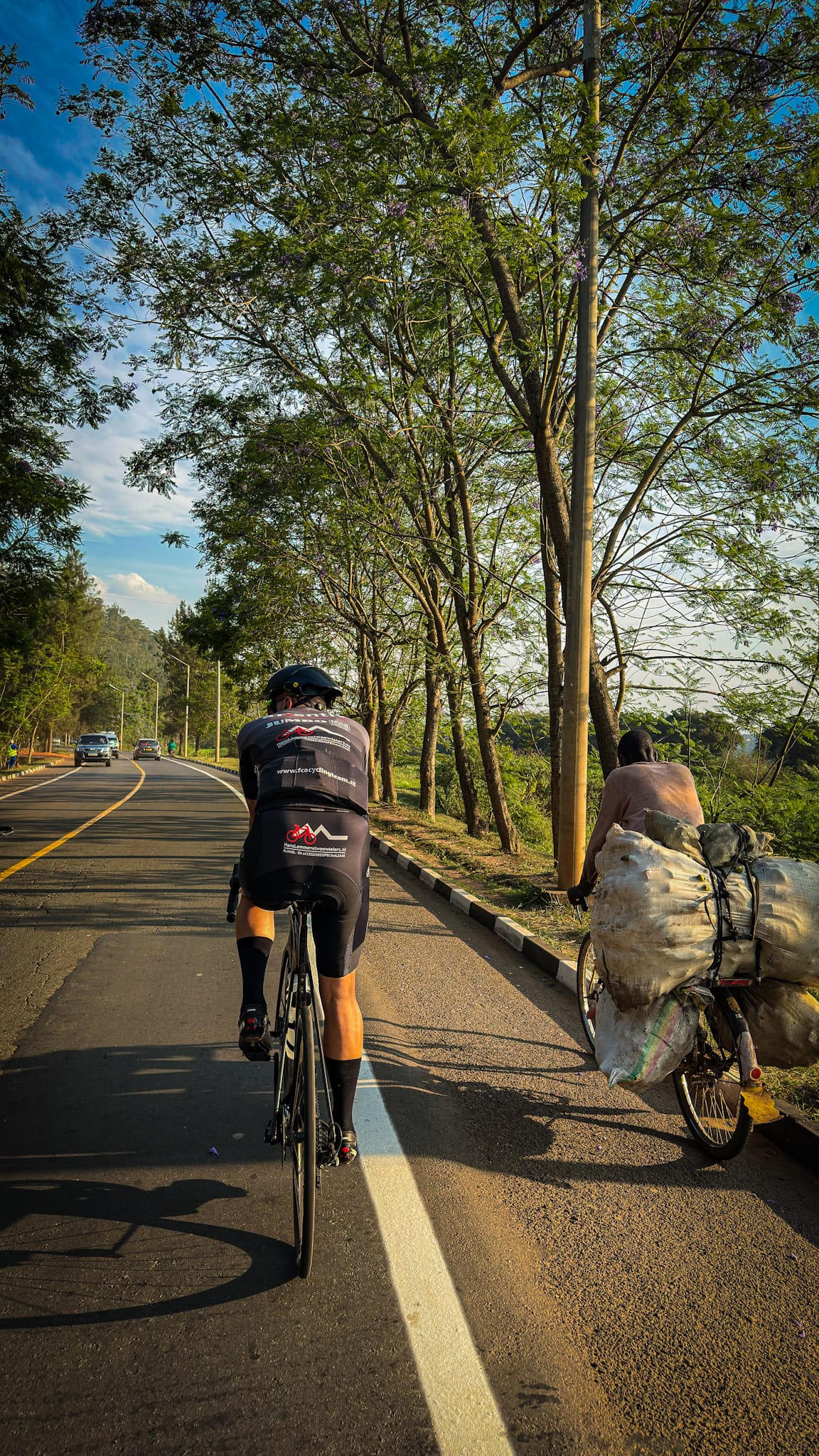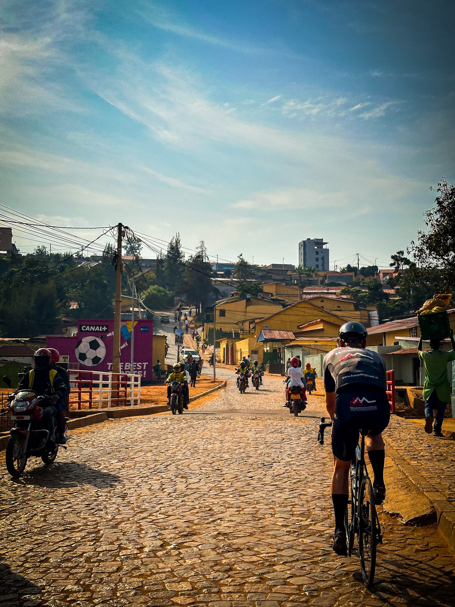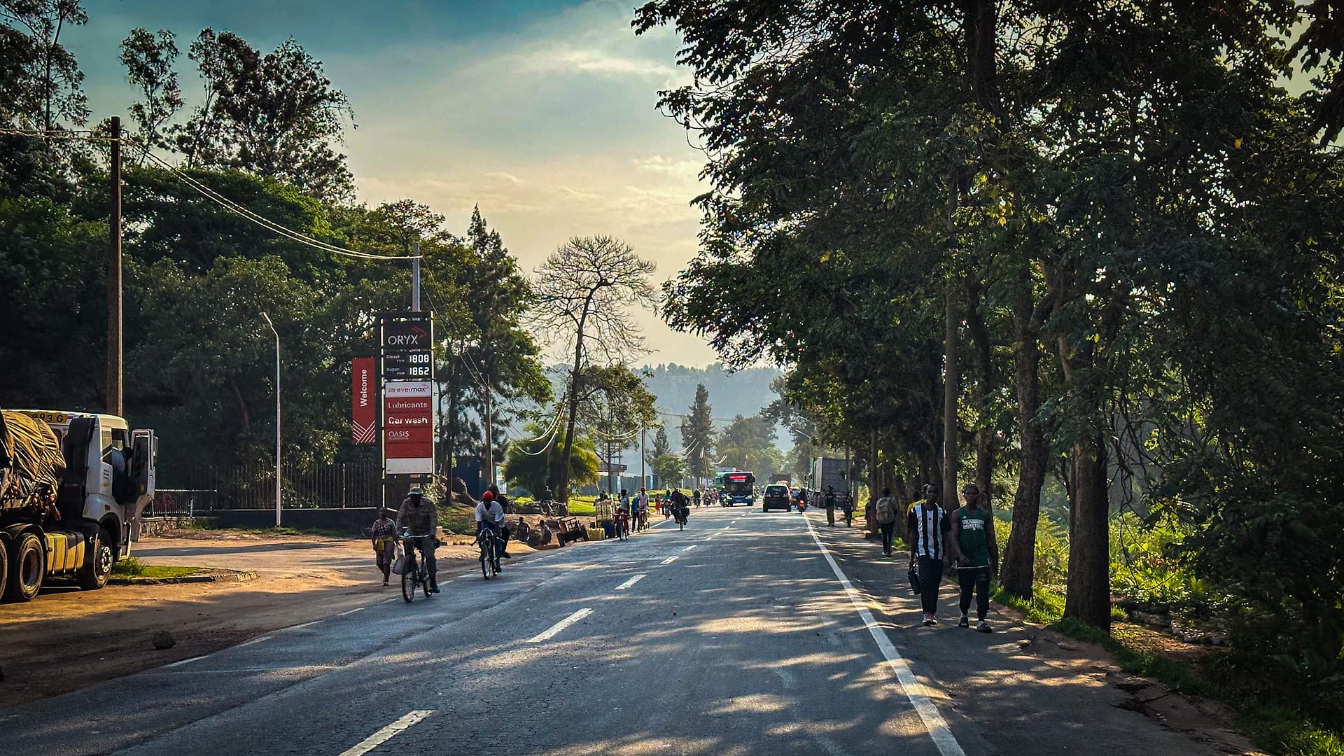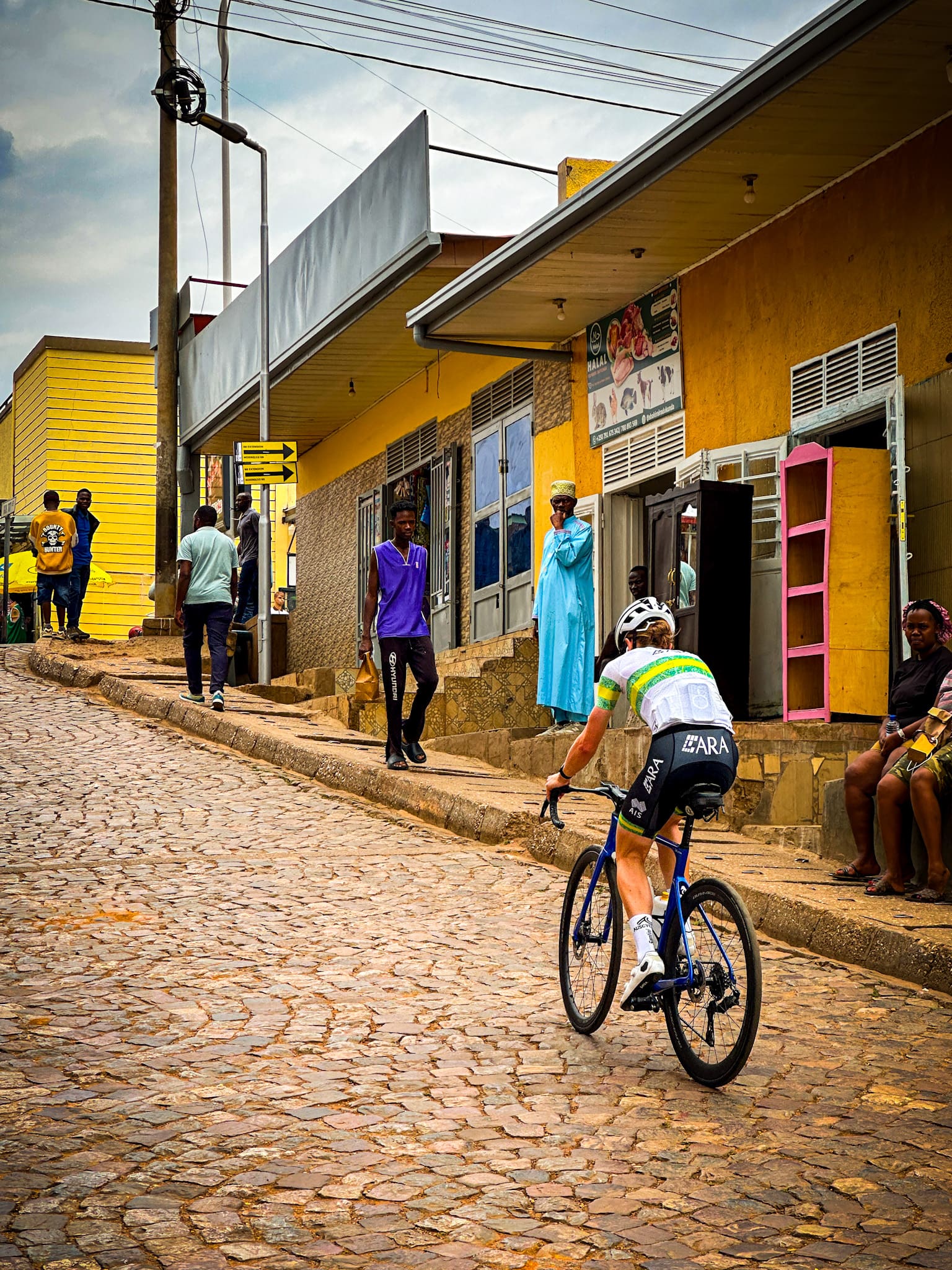 An sich gaat deze Mur het verschil niet maken, maar in het WK rijden ze eerst Mount Kigali op. Enkele dagen na onze kennismaking met ‘de Muur’ rijden we naar ’the mount’. Een mooie, strakke asfaltweg, met links en rechts wat huizen en akkervelden leidt ons naar de voet van de klim. Vooraf hebben we even gekeken en ‘volgens Komoot’ is deze klim in drie delen te doen. Een steil eerste deel, iets minder steil tweede deel en een prima derde deel.